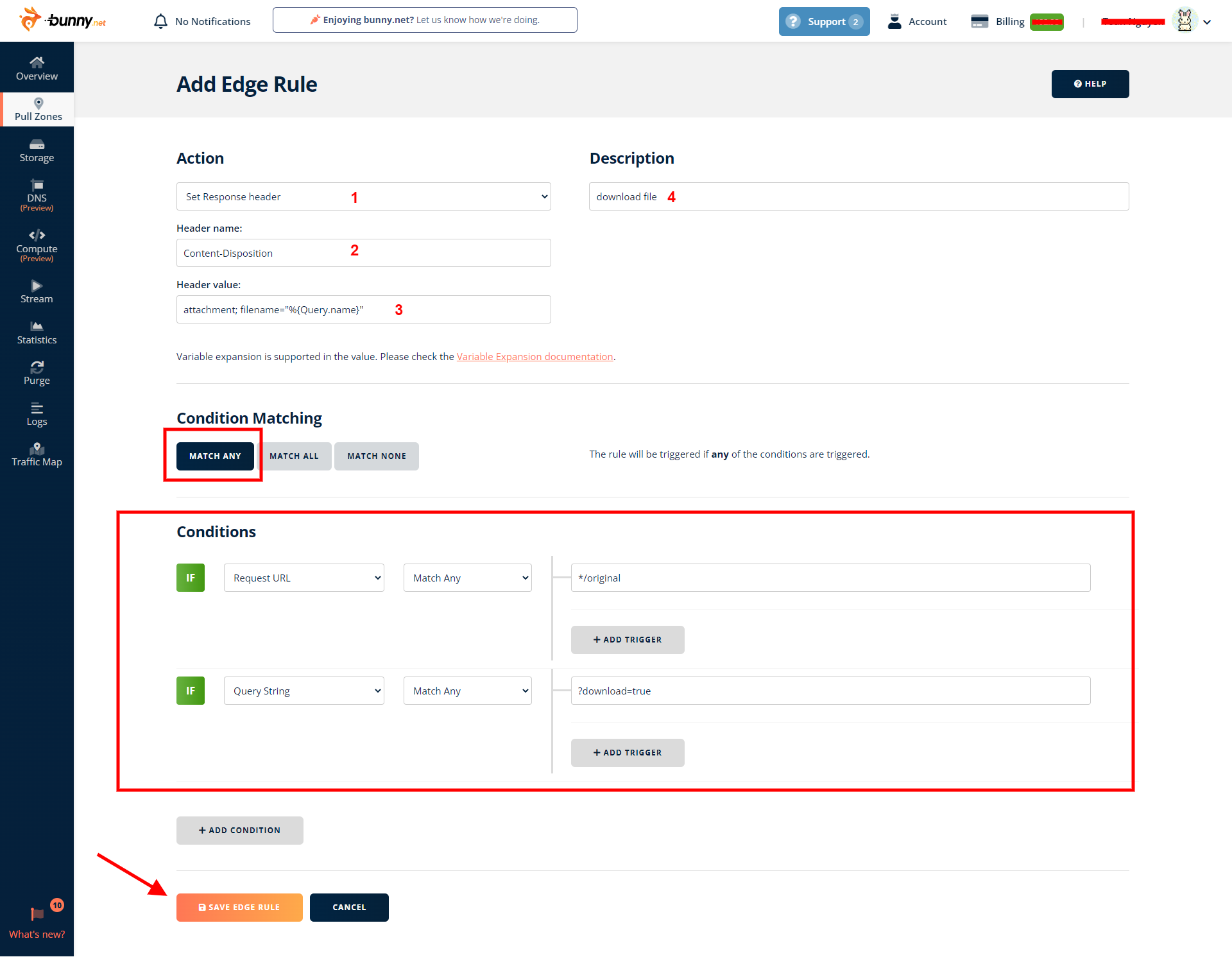 6. **(6)** Finally, click the **SAVE EDGE RULE** button