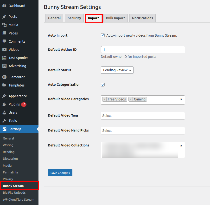 Enabling Auto-Import will automatically import new videos from Bunny Stream using Webhook without manual action. Navigate to the Import tab to configure the desired options.