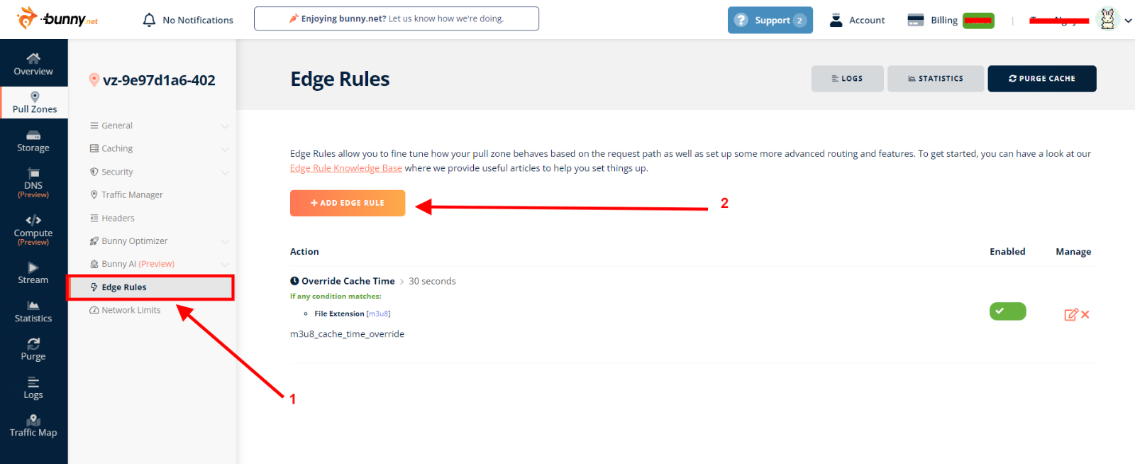 **Step 4**: click the **Edge Rules** and click the **ADD ADGE RULE** button.